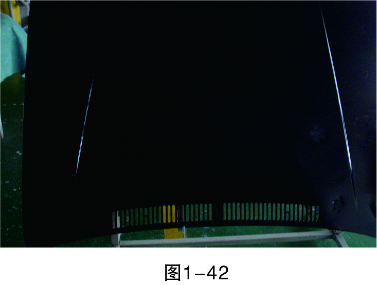 步驟1(定位):拆下發(fā)動機蓋罩固定螺栓,將拆下的發(fā)動機蓋罩移至修復(fù)工作臺,如圖1-42所示。