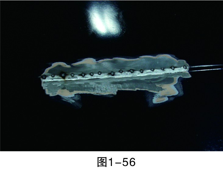 步驟5(直線焊接):把介子焊接成一條直線,為之后使用整形架做好準備,如圖1-46所示。