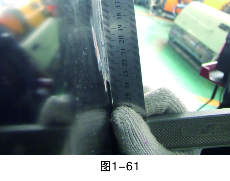 步驟20(測量):對修復(fù)平面進行測量,檢查是否在同一水平線上,如果是就可結(jié)束鈑金修復(fù)作業(yè),否則重復(fù)前面步驟直至修復(fù)完成,如圖1-61所示。