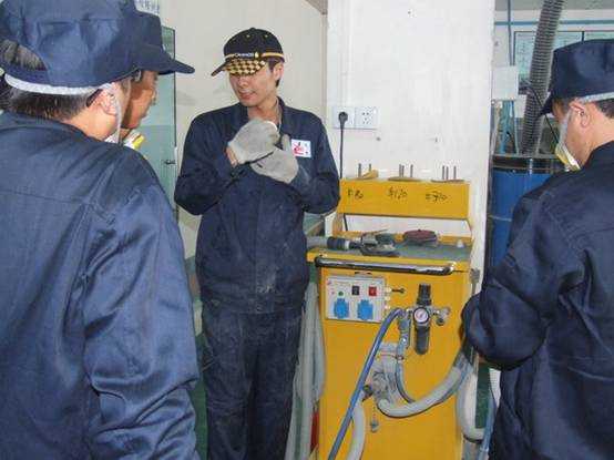 林老師演示除銹機(jī)的使用方法