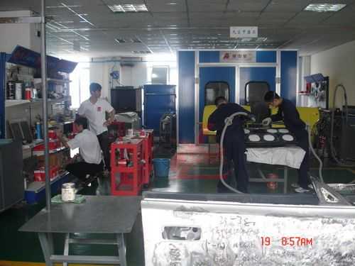 參觀龍神培訓(xùn)中心的汽車(chē)鈑噴設(shè)備和工具