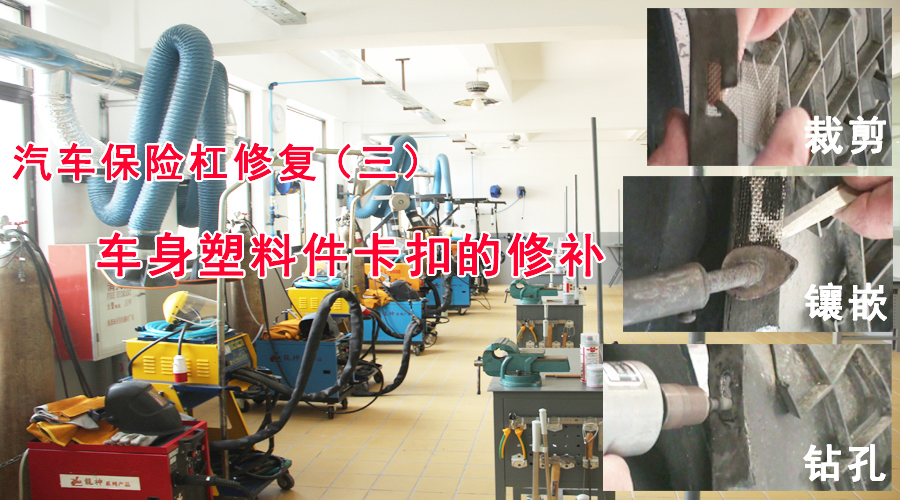 汽車(chē)保險(xiǎn)杠修復(fù)(二)塑料件的穿孔修復(fù) 2014-11-28 20382 汽車(chē)車(chē)身穿孔修復(fù)的前期準(zhǔn)備非常重要,必須嚴(yán)格按照工藝流程,將修復(fù)孔表面和周邊打磨平整、清潔干凈,而成本低、修復(fù)速度快、貼敷粘連使用設(shè)備少的無(wú)繡加固網(wǎng)焊接修復(fù)技術(shù)是應(yīng)對(duì)穿孔修復(fù)的有效手段。塑料件的穿孔修復(fù)詳細(xì)步驟見(jiàn)下圖。(以下步驟中用到的工具:龍神電動(dòng)氣動(dòng)鉆、龍神打磨機(jī)、龍神修補(bǔ)網(wǎng)、修補(bǔ)膠條、電烙鐵)