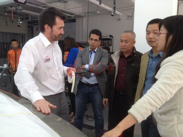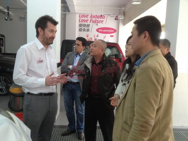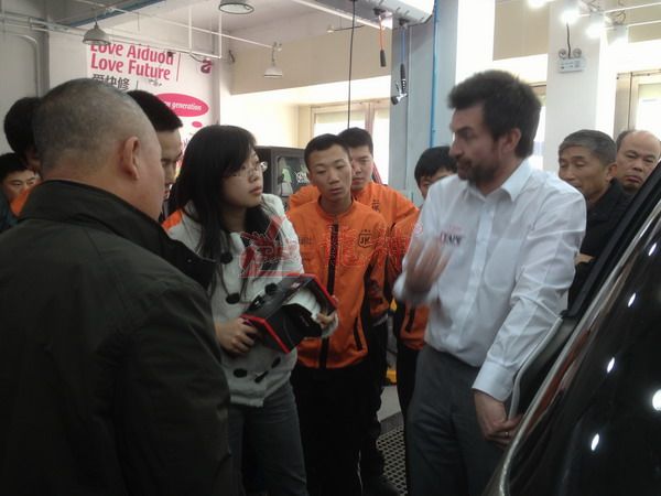 2013年特邀國外專家赴北京車爵士演示車縫泡膠條的使用 本司訊:2013年4月北京晴空萬里,龍神公司特邀英國專家一行五人,來到了北京車爵士進行汽車噴涂遮蔽技術(shù)交流。首先公司一行了解車爵士的汽車噴涂情況及詢問了使用的遮蔽工具情況。隨后英國專家針對在汽車噴漆時難噴涂的車門縫隙、玻璃死角等地方的專業(yè)遮蔽工具的演示。車縫泡沫膠:用于車身所有縫隙的遮蔽,有效隔離及遮蔽漆霧噴入車縫里。 2013-04-08 12061