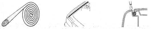 同前面的繩子作用一樣,是一種輔助遮蔽材料,主要用在有密封條的部位的遮蔽。有經(jīng)驗(yàn)的師傅知道,在遮蔽密封條或嵌條部位時(shí):遮蔽過多,部分邊緣會(huì)無法噴到涂料;遮蔽過少,則會(huì)連密封條或嵌條上也噴上了涂料。在這種情況下,可以在密封條下面嵌入一種特別的產(chǎn)品,將密封條或嵌條與車身之間撐起一道縫隙,這樣在涂裝時(shí),涂料就能涂勻縫隙邊緣,拆下遮蔽材料后,縫隙邊緣的涂膜就會(huì)均勻飽滿。下圖所示即為此類產(chǎn)品的一例: