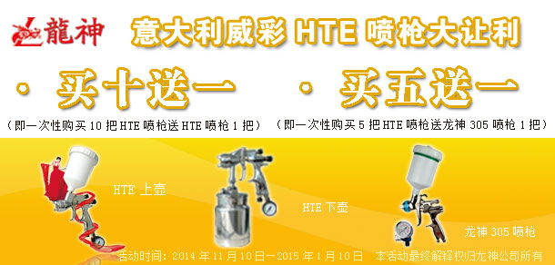 1、買十送一(即一次購(gòu)買十把HTE噴槍送一把HTE噴槍)
